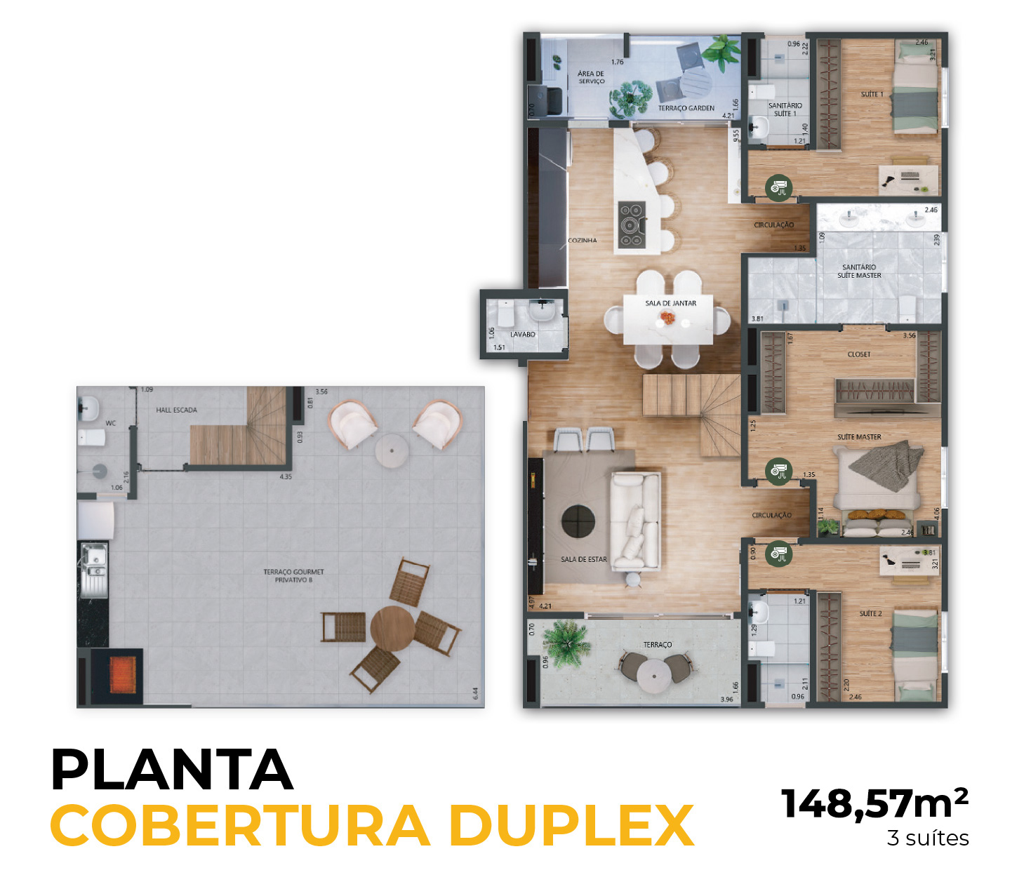 With a prime location in the city of São Manuel, this residential development offers 2-bedroom apartments (including 1 en-suite) with 53.80 m², as well as penthouse units of 150 m². The building features 2 elevators and a total of 3,695.49 m² of constructed area, with leisure and community amenities such as a game room, gym, swimming pool, party room, playground, recreational court, and pet place. Each apartment includes parking spaces ranging from 1 to 3.